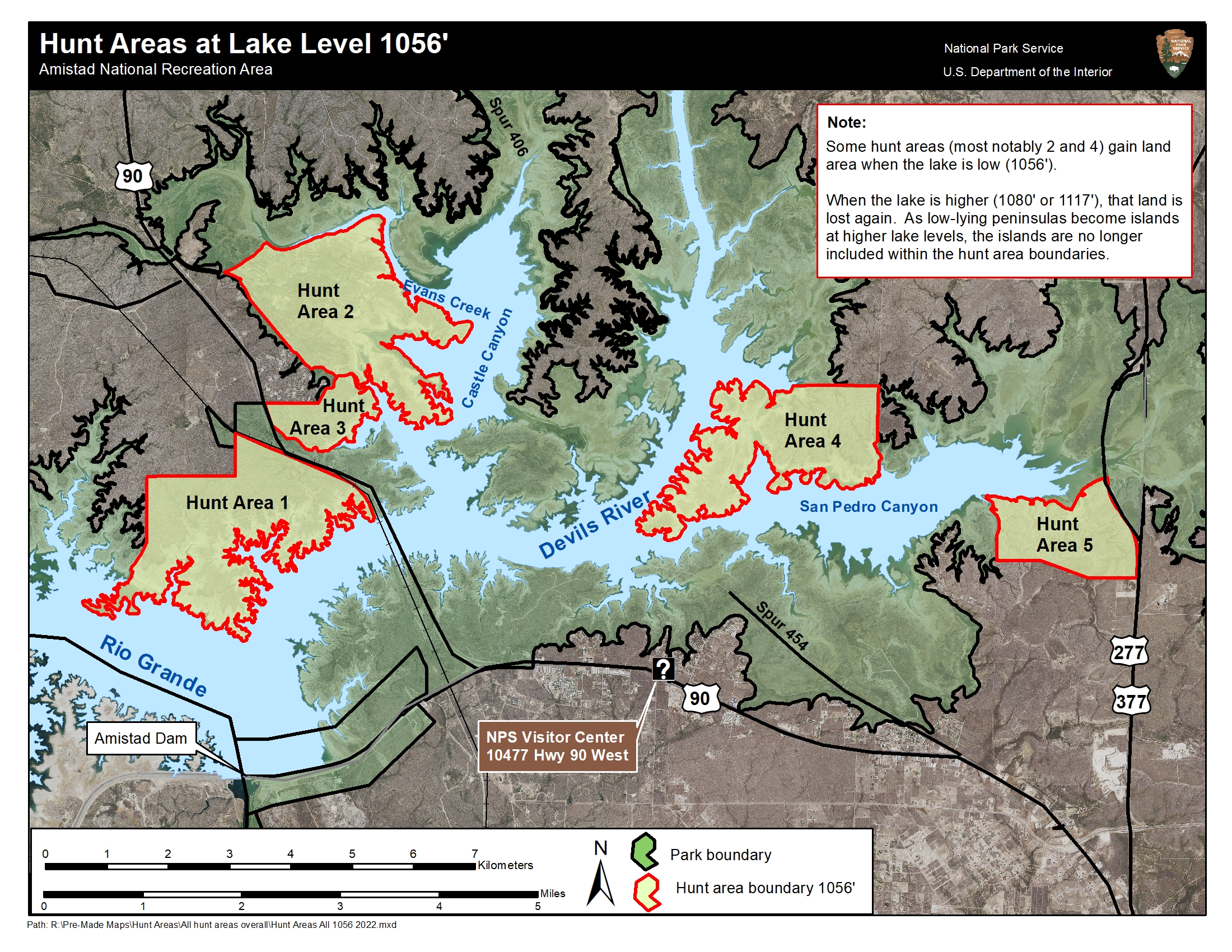 Map of all hunt areas at Amistad National Recreation Area - Click map for enlarged 8.5"x11" image.